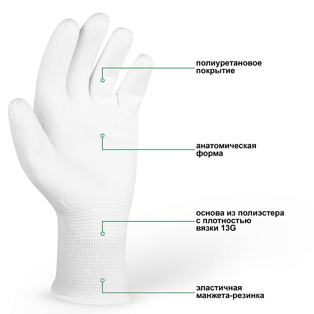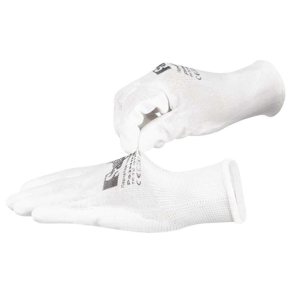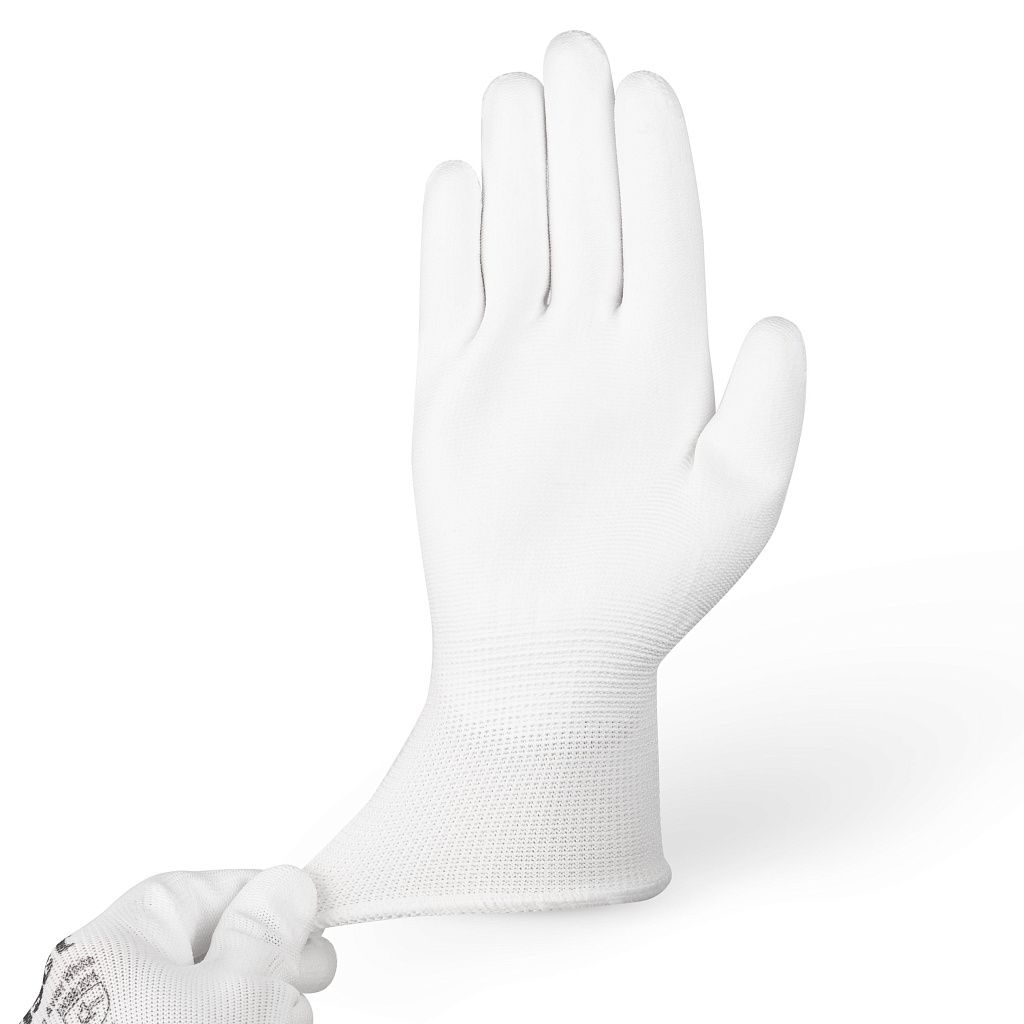 Частичное полиуретановое покрытие обеспечивает хорошую вентиляцию и отвод влаги. Белый цвет перчаток позволяет легко контролировать загрязнения и обеспечивает соблюдение стандартов чистоты в рабочих зонах.