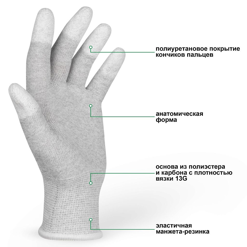 Перчатки предназначены для работ, где требуется надежная защита от статического электричества и высокая точность движений. Они изготовлены из полиэстера с добавлением карбоновых нитей, что обеспечивает эффективное рассеивание статических разрядов и снижает риск повреждения чувствительных электронных компонентов.