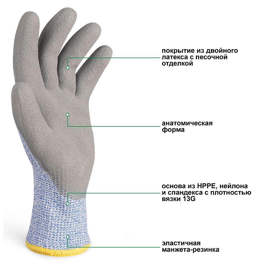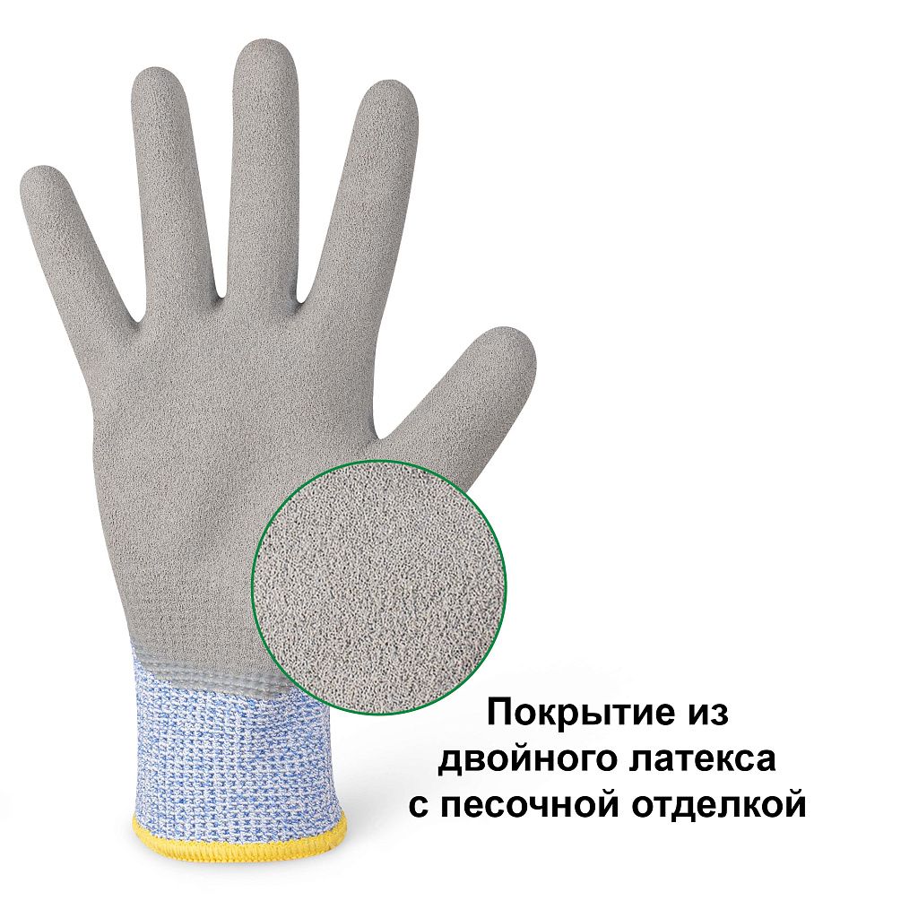 Двойное латексное покрытие с песочной отделкой обеспечивает надежный захват сухих, влажных и скользких поверхностей, повышая безопасность и точность работы. Перчатки хорошо подходят для стекольной промышленности, металлообработки, монтажных и строительных работ, а также для других задач, где требуется повышенная защита и уверенный контроль инструмента.