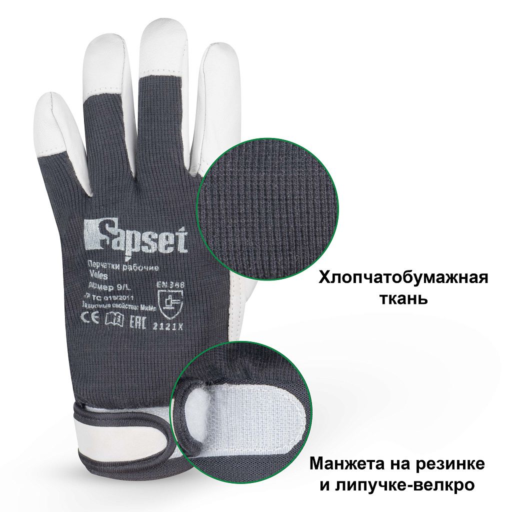 Рабочие перчатки Veles от бренда Sapset – это сочетание качества, гибкости и удобства. Ладонь выполнена из натуральной козьей кожи, которая отличается высокой износостойкостью и мягкостью. Тыльная сторона из эластичной ткани обеспечивает свободу движений, что особенно важно при длительных или мелких работах. Регулируемая застежка на липучке позволяет индивидуально настроить ширину по запястью, гарантируя надежную фиксацию и комфорт при использовании. Перчатки подходят для строительных, садовых, монтажных и других работ. Практичное решение для тех, кто ценит качество и функциональность.