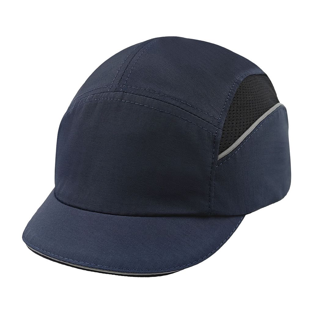 Каскетка анатомической формы предназначена для защиты головы от ударов о неподвижные предметы. Пластиковая вставка анатомической формы с амортизирующей прокладкой, выполненной из вспененного полиуретана. В боковых частях имеются вставки из сетки для вентиляции. Для регулировки объема в затылочной части расположен хлястик с лентой велкро. Сигнальные элементы из светоотражающего канта.
